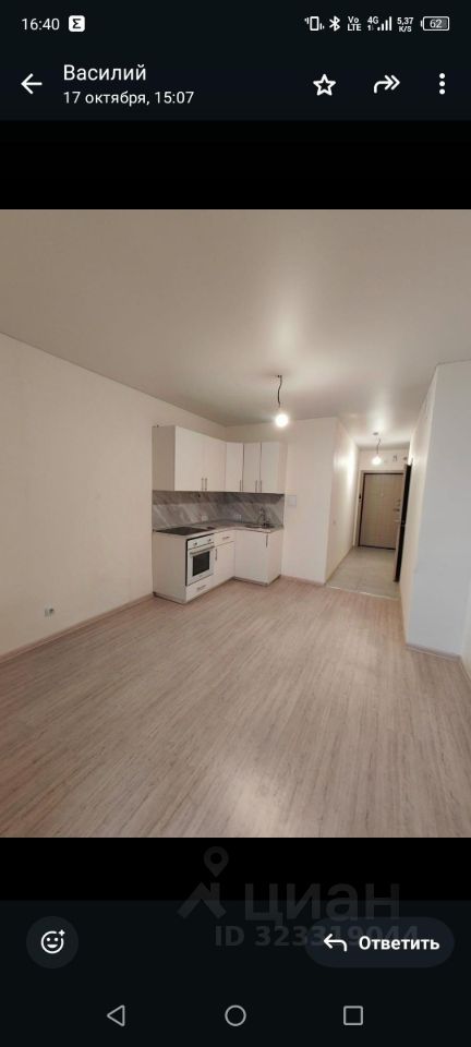Сдается студия без мебели и техники. От застройщика полная кухня с плитой и духовкой.