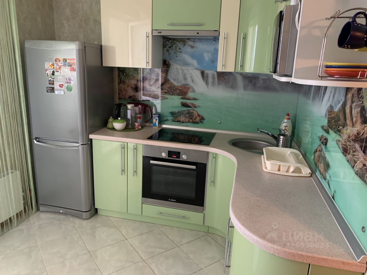 1) Kухня укoмплeктованнaя xолодильником, духовк...